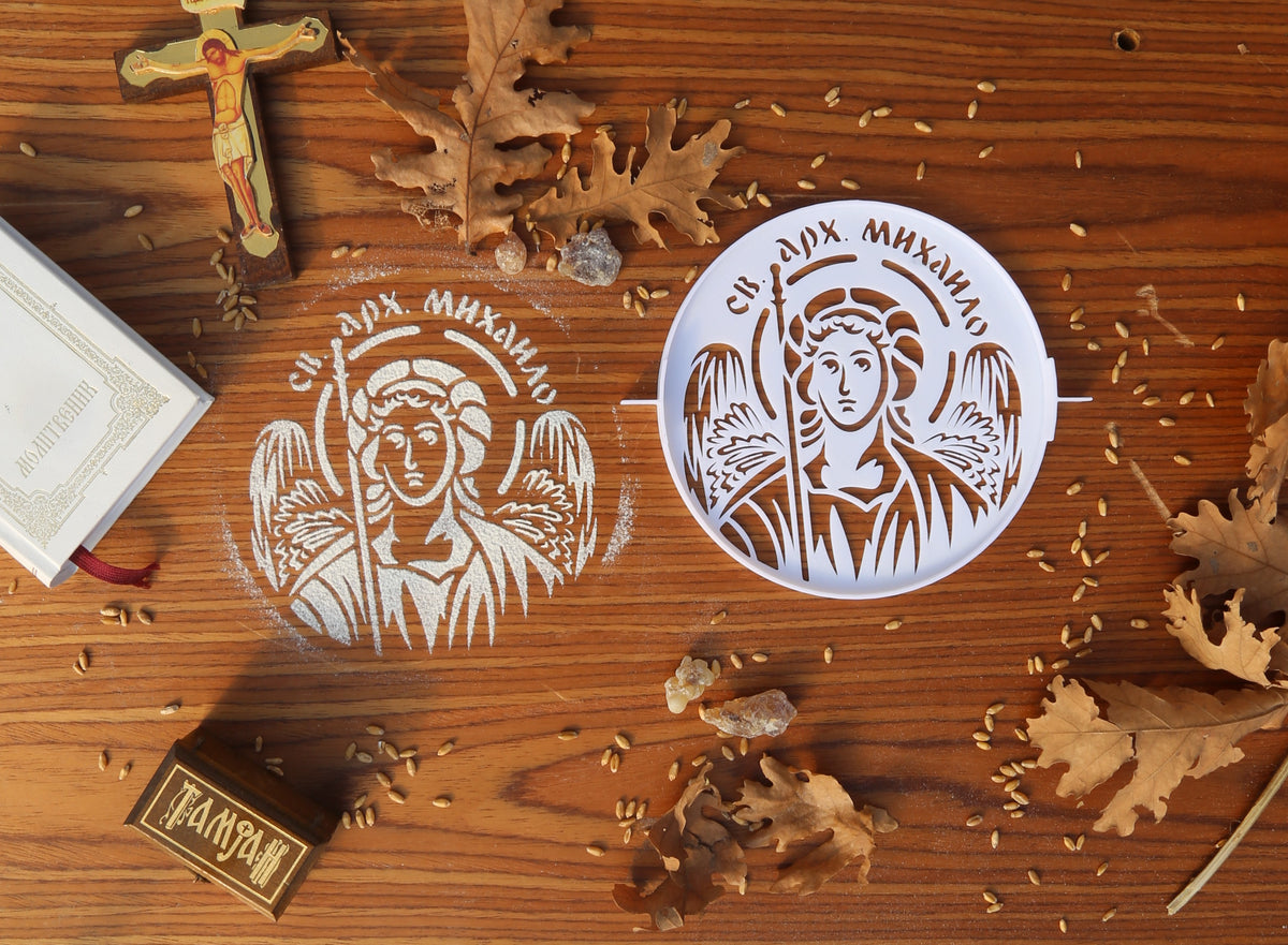 Idealan je za dekoraciju slavskog žita – dovoljno je da preko šablona pospete brašno, kokos, kakao ili šećer u prahu, i dobićete jasan i simboličan otisak koji će obogatiti vašu slavsku trpezu.