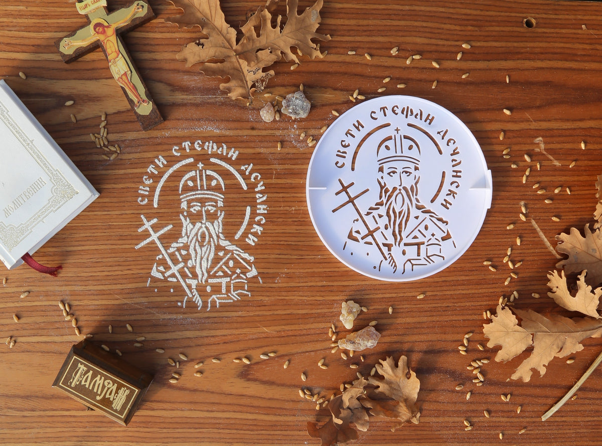 Unesite duh tradicije i duhovnosti u obeležavanje krsne slave uz ovaj precizno izrađen šablon sa likom Svetog Stefana Dečanskog.